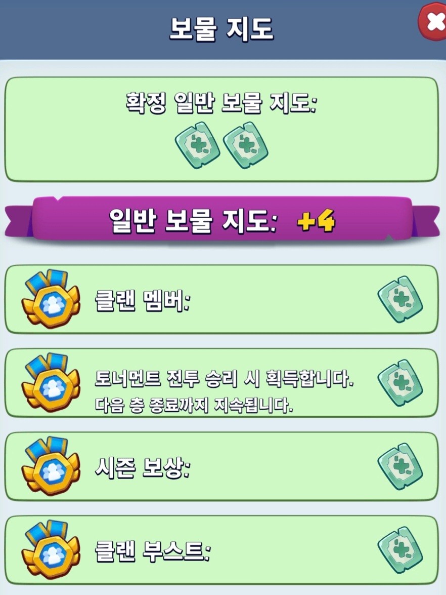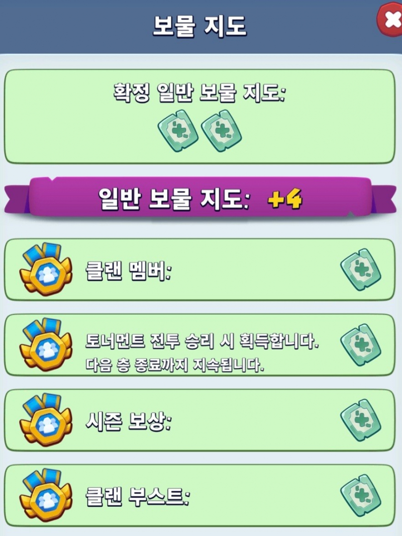일반적으로 보물지도는 매일 로그인하면 2개 확정이고,