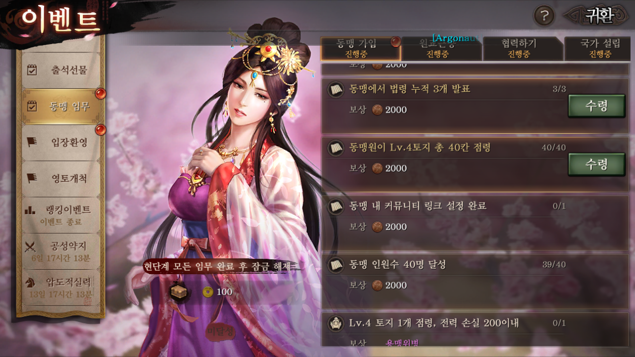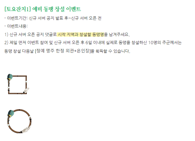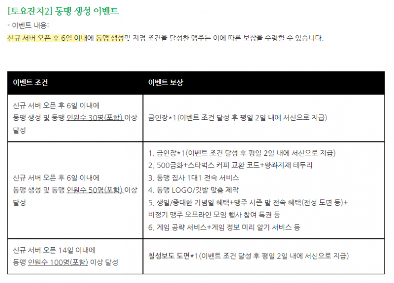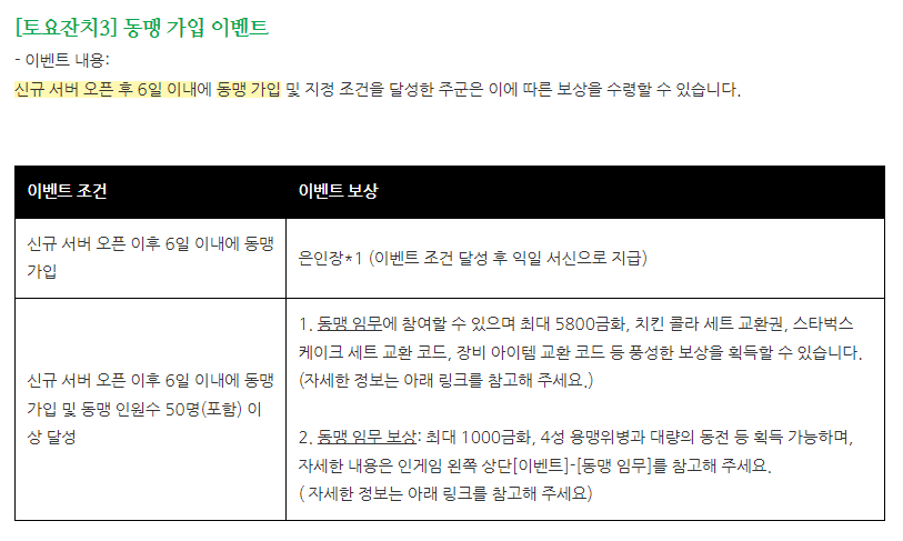 신서버에서 6일 안에 동맹 생성, 가입하게 되면 추가적으로 더 많은 보상 주는