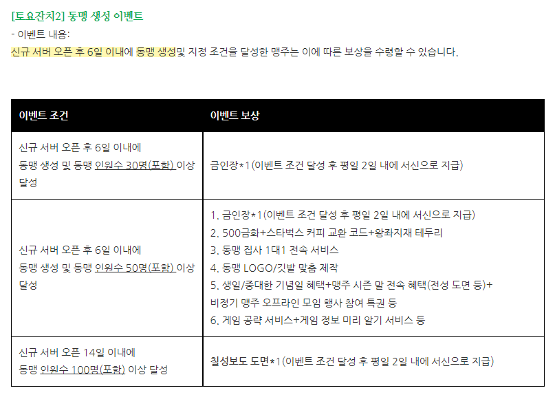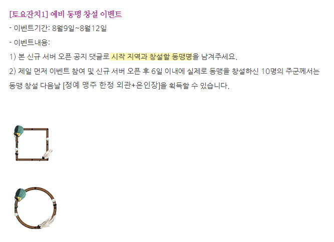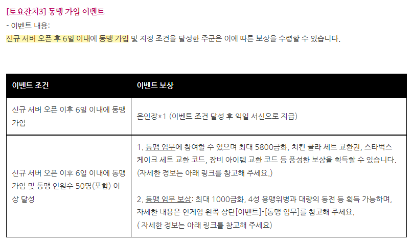 이번 토요일 잔치 이벤트에서 예비 동맹 창설 이벤트 참여해 보세요.