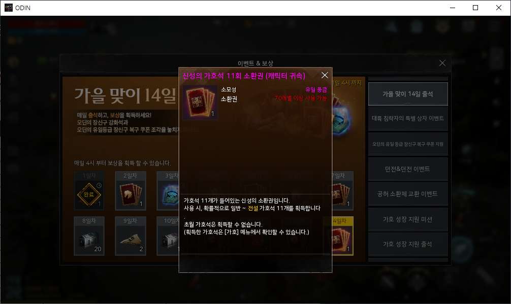 치토스 오딘 가을 맞이 축제 보상 작성일시 : 2022. 08. 24 (17:55) 조회 : 567 / 댓글 : 2 오딘 오늘 업데이트해서 드가보니 가을 맞이 14일 출첵 이벤트도 하고 있는지라 14일 출석만 찍으면 신성 가호석 11뽑도 주고가호석 관련 성장 지원 이벤트도 하고 있어서 스펙 업 하기 딱 좋으실 듯글고 업데이트 내용 살펴보니까 가호석 능력치가 전체적으로 상향됐든데아스가르드 파밍이나 기존에 퀘스트 막혀서 힘드셨던 분들은 좀 더 수월해지실 것 같아요. 1추천 글쓰기스크랩 신고