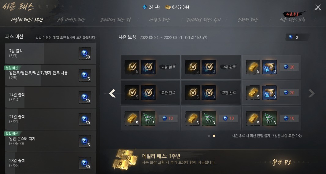 살모사 블소2 1주년 보상 괜찮은듯 작성일시 : 2022. 08. 30 (13:11) 조회 : 529 / 댓글 : 1 뭐 영웅소울같은거는 거의 예전부터 꾸준히 뿌려주던거였는데이번에 아예 전설소울까지도 그냥 뿌리더라구요 ㄷㄷ일단 주는거 받기는 했는데 아직 영력모잘라서 쓰지는못함 ㅋㅋ거기다 이번에는 아예 패스같은것들도 금화로 거의 다 구매할 수 있음그렇다고 보상을 좀 짜게주는것도아니라서 1주년은 1주년인듯 ㄷㄷ오랜만에 복귀했는데 보상도좋고해서 한동안 해볼생각임 2추천 글쓰기스크랩 신고