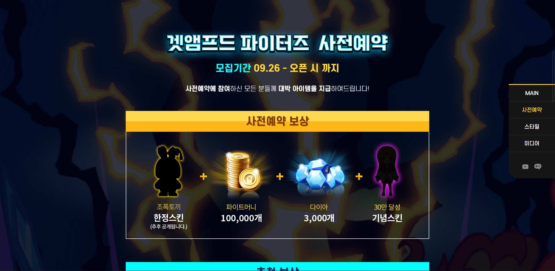 꾸쀼쀼 겟앰프드 파이터즈 사전 예약 하던데 작성일시 : 2022. 09. 30 (15:18) 조회 : 582 / 댓글 : 1 겟앰프드 파이터즈 사전 예약 시작했는데pv 영상 보는데 원작 되게 잘 살려놨더라고요 ㅋㅋㅋ옛날에 겟앰프드 진짜 엄청 핫했었는데그게 모바일로 나온다고 하니까 해보고 싶긴 함요 공식 홈페이지랑 공식 라운지에서 사전 예약 중이고사전 예약 보상으로 한정 스킨, 파이트머니, 다이아 거기에 30만 달성하면 기념 스킨도 준다하니 참고요 1추천 글쓰기스크랩 신고