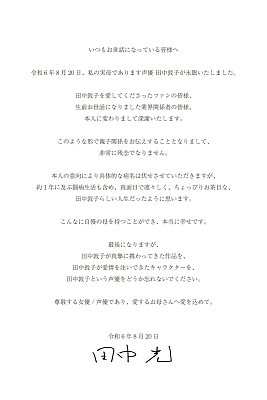 타나카 아츠코 성우 별세..
