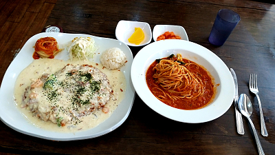 오늘 점심은 까르보 돈까스 & 스파게티
