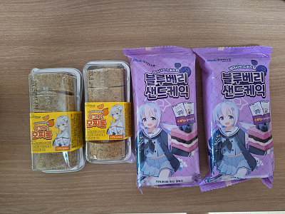 블루 아카이브 얼그레이 모찌롤 & 블루베리 샌드케익 2개씩 샀습니다.