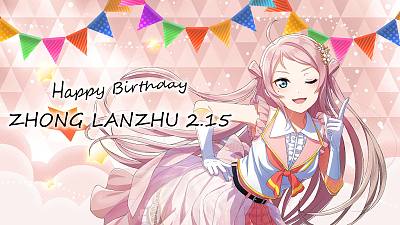2월 15일 니지동 멤버이자 항상 열정으로 스쿨 아이돌로 열심히 인기가 많은 홍콩에서온 유학생 쇼우 란쥬짱 생일축하해~!!🎉🎁🎂🥳🎊👍👍💕💕