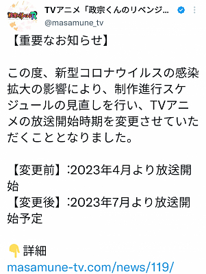이젠, [마사무네의 리벤지 R] 마저 연기라니...