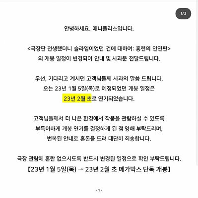 전생슬 극장판 개봉일정 변경
