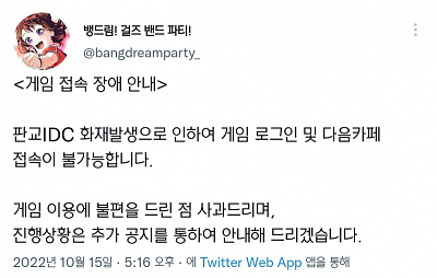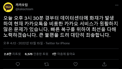 카카오 데이터센터 화재
