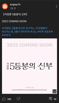 5등분의 신부 극장판이 국내개봉이 확정됬네요
