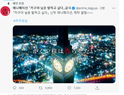 스포주의) 카구야 신작은 4기가 나올듯 합니당