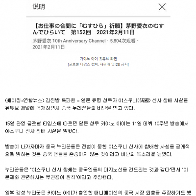 카야농 야스쿠니 신사 참배로 논란