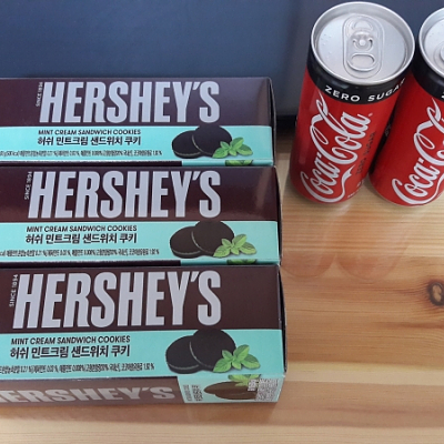 허쉬 민트크림 샌드위치 쿠키와 콜라