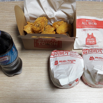 저녁은 치킨과 햄버거입니다.