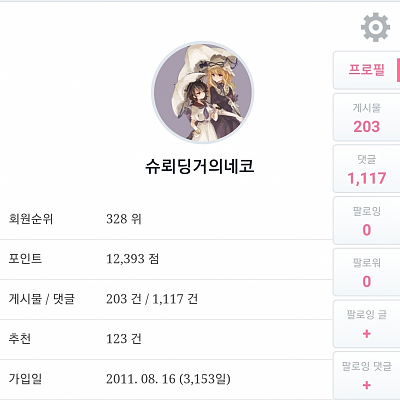 애니 순위 캐릭터 순위는 매주 바뀜? 아님 매달? 매년?