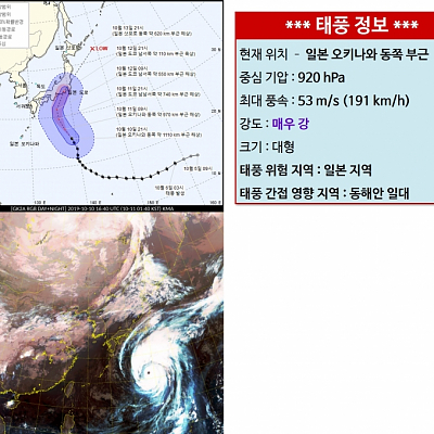 일본으로 가는 태풍의 정보입니다.
