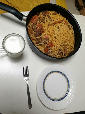 저녁은 돼지갈비볶음 우동 & 스파게티