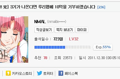 워킹 3기가 나온다면 루리웹에 10억을 기부하겠습니다