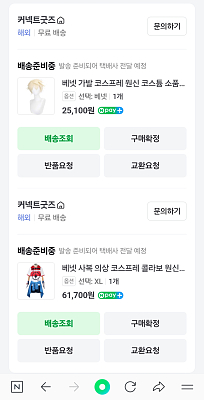 원신 캐릭터 코스프레 의상과 가발 주문했습니다!
