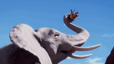 장수말벌을 내던져버린 아프리카코끼리
