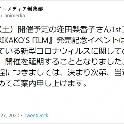 성우 아이다 리카코 1st 포토북 발매 기념 이벤트 연기 발표