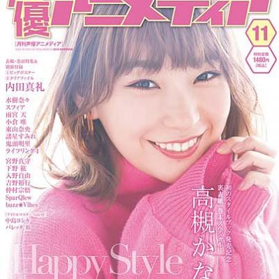 성우 아니메디아 2019년 11월호 뒤표지 공개, 성우 타카츠키 카나코의 사진이 장식