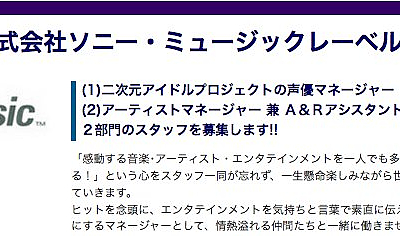 소니 뮤직에서 2차원 아이돌 프로젝트의 성우 매니저 등 스탭 모집 공고