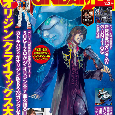 야스히코 요시카즈씨가 그린 LUNA SEA의 SUGIZO씨와 샤아의 일러스트가 건담 에이스 표지 장식