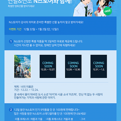 『너의 이름은』3일간 무료 관람 실시!!