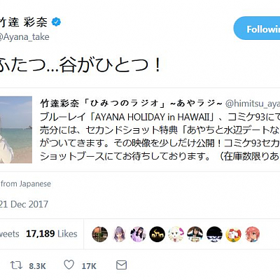 성우 타케타츠 아야나, 자신의 영상에 대해 '산이 두개... 계곡이 하나!'라고 코멘트