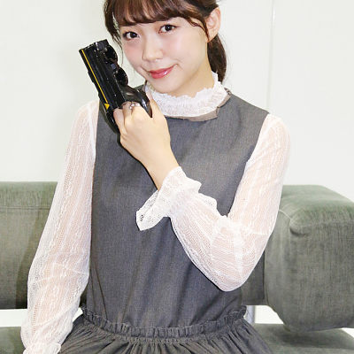 성우 미모리 스즈코씨의 사진, 울트라맨 지드 완구 상품을 들고