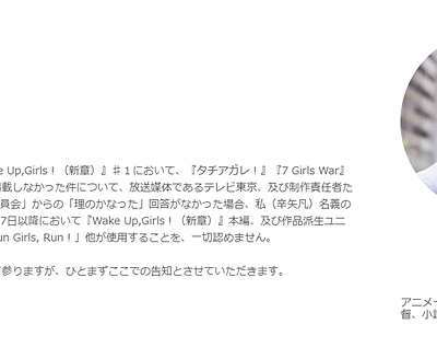 야마칸 감독의 WUG 관련 통고에 대해, TV 도쿄측은 제작위원회에서 협의중이라고 코멘트
