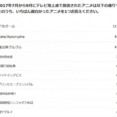 니코니코 앙케이트, 2017년 여름에 가장 재미있었던 애니메이션은?