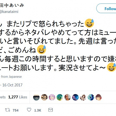 성우 다나카 아이미, 트위터에서 우마루짱 실황을 한 모양입니다만
