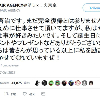 성우 후지와라 케이지씨, AIR AGENCY의 공식 트위터에서 감사 인사