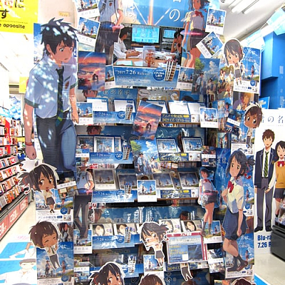 극장 애니메이션 '너의 이름은'의 블루레이가 발매된 아키하바라의 모습