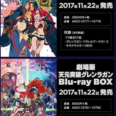 애니메이션 '천원돌파 그렌라간' TV판 및 극장판 블루레이 박스 동시 발매 결정