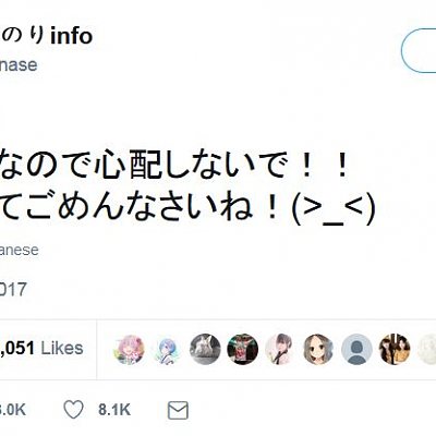 성우 미나세 이노리, 공식 트위터에서 심려를 끼쳐드려 죄송하다고 언급