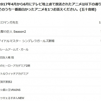 니코니코 앙케이트, 2017년 4월 시즌 애니메이션 인기 투표 결과
