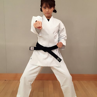 성우 미모리 스즈코씨의 사진, 가라테에 첫도전하는 모습인 듯