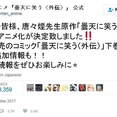 만화 '흐린 하늘에 웃다 외전'의 애니메이션화가 결정된 듯