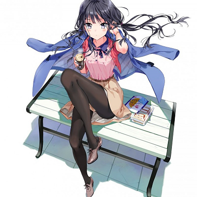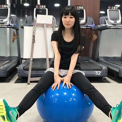 성우 토우야마 나오의 사진, 뮤직 비디오 촬영중에 쉬는 모습