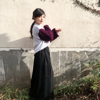 성우 미모리 스즈코씨의 사진, 니트 스웨터 차림이 참 예쁘네요.