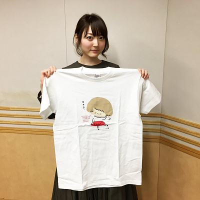 성우 하나자와 카나씨의 사진, 히토카나 티셔츠를 들고