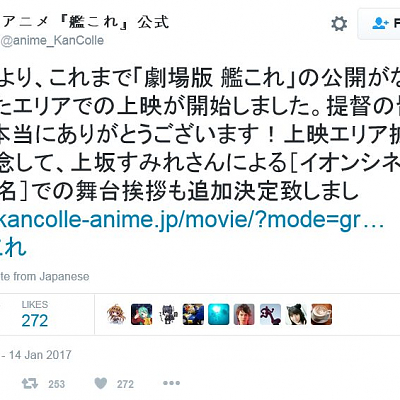 성우 우에사카 스미레가 등단하는 극장판 칸코레 추가 무대 인사 결정