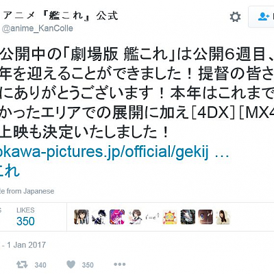 극장판 칸코레, 일본의 일부 극장에서 4DX 및 MX4D 상영 결정