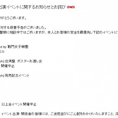 성우 미나세 이노리에 대한 살해 예고를 올린 용의자는 이미 서류 송검된 듯