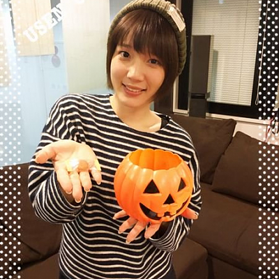 성우 우치다 마아야씨의 사진, 호박을 들고 있는 게 인상적이네요.