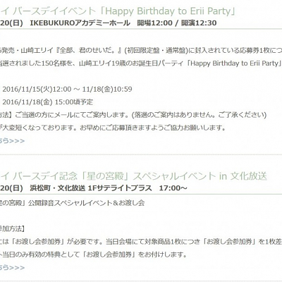 성우 야마자키 에리이, 만 19세 생일 기념 이벤트 2가지 개최 소식