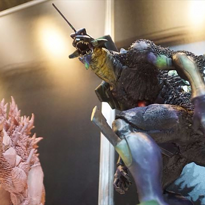 고질라 대 에반게리온 신작 피규어 2가지가 전시된 모습